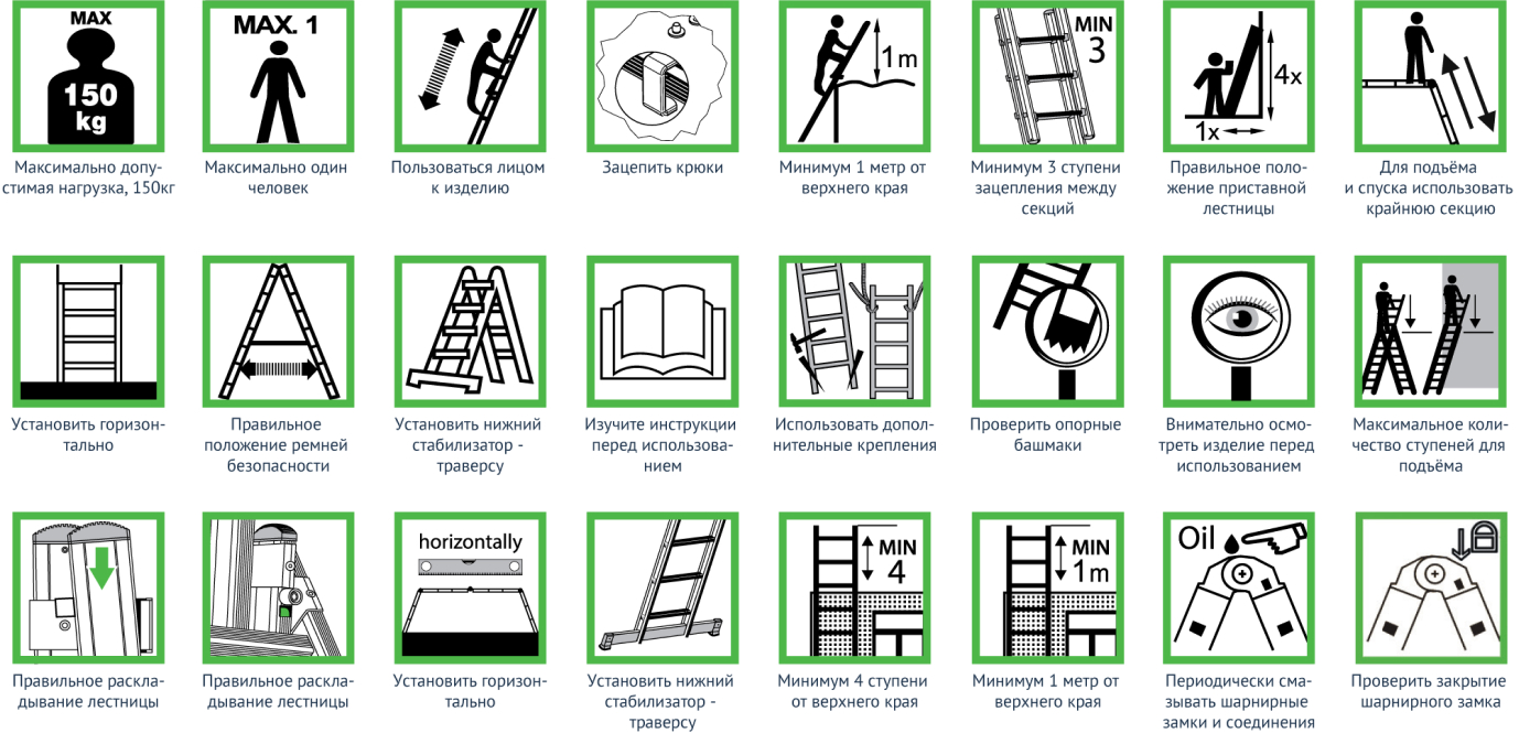 Лестницы, стремянки, а также вышки-туры (помосты) по условиям применения делятся на две больших группы - бытовые и профессиональные. Бытовые предназначены, в основном, для «домашних» работ, при этом предполагается нечастое их использование. Максимальная нагрузка составляет 150 кГс. Максимальная нагрузка на лестницы профессиональной серии тоже 150 кГс, однако из-за применения более «мощного» профиля упругий прогиб лестницы при эксплуатации существенно меньше, чем у бытовой серии, что в конечном итоге обеспечивает более комфортные условия для работающего. Кроме того, профессиональная серия имеет существенно более высокий запас прочности. Профессиональная серия предполагает постоянное (с утра до вечера и изо дня в день) использование лестниц. Следует сказать, что вес их больше бытовых, и, как следствие, выше цена.